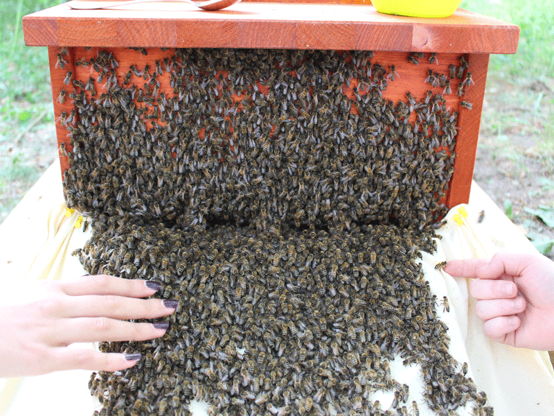 Wir betreuen die Bienenvölker im Biotop und kümmern uns um alles, was für die Pflege der Völker notwendig ist. Dazu gehören unter anderem: Völker-Durchsicht, Honig ernten, Gläser etikettieren, Kerzen gießen aus Bienenwachs und vieles mehr.