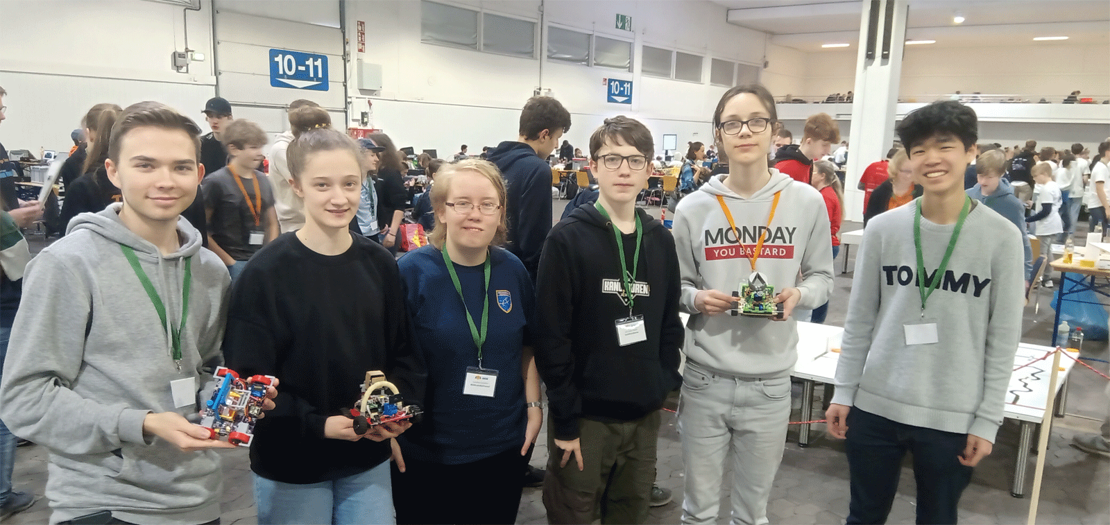 Vier Tage angestrengter Arbeit von früh bis spät in die Nacht liegen hinter uns, vier Tage Programmieren, Bauen, Hoffen und auch Scheitern. Nach einer langen Corona-Pause gab es für uns endlich wieder die Chance, an der deutschen Meisterschaft teilzunehmen. Oskar, Quang und Lukas haben sich in ersten Läufen immer weiter steigern können, nur im Finale am Sonntag klappte bei ihnen wie auch bei den beiden anderen Teams nicht alles. Insgesamt nahmen 52 Teams aus ganz Deutschland teil, so dass wir auf die Plätze 8, 14 und 16 sehr stolz sind.