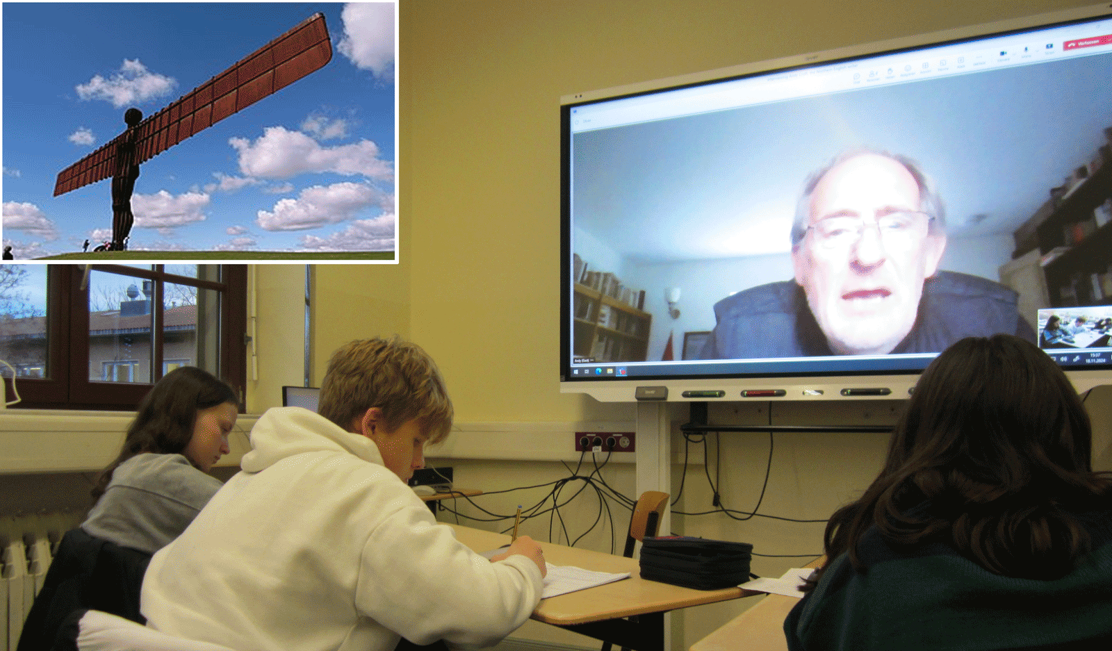 An einem Montag noch im alten Jahr hatte unsere Englisch-AG den nordenglischen Schriftsteller und Poeten Andy Croft per Teams-Konferenz zu Gast. Er beantwortete alle Fragen und erzählte von seiner Heimat und den Menschen. Wir erfuhren, dass der berühmte Engel des Nordens (Bild) auf einem ehemaligen Kohlebergwerk gebaut wurde, dass der Kohletransport die Eisenbahn an ihrer Wiege (Nordengland) erst richtig wachsen ließ, und waren überrascht, dass heute Rivalitäten zwischen Northerners und Southerners (besonders London) nicht nur im Fußball bestehen. Andy Croft machte gleich vier verschiedene Dialekte vor: Scouse, Mancunian, Geordie und Yorkshire. Als ehemaliger Stadtschreiber (writer in residence) von Middlesbrough, der um 1900 wichtigsten stahlproduzierenden Stadt der Welt, die von Nazideutschland im Krieg gegen Großbritannien als erstes und am stärksten bombardiert wurde, was das Stadtbild bis in die Gegenwart prägt, und angesichts politischer Veränderungen nach dem Brexit auch im Norden betonte er die große Bedeutung, die dem gegenseitigen kulturellen und historischen Verständnis von europäischen Jugendlichen zukommt. Zum Dank für unsere schlauen Fragen schenkt er nun unserer AG eines seiner Bücher.