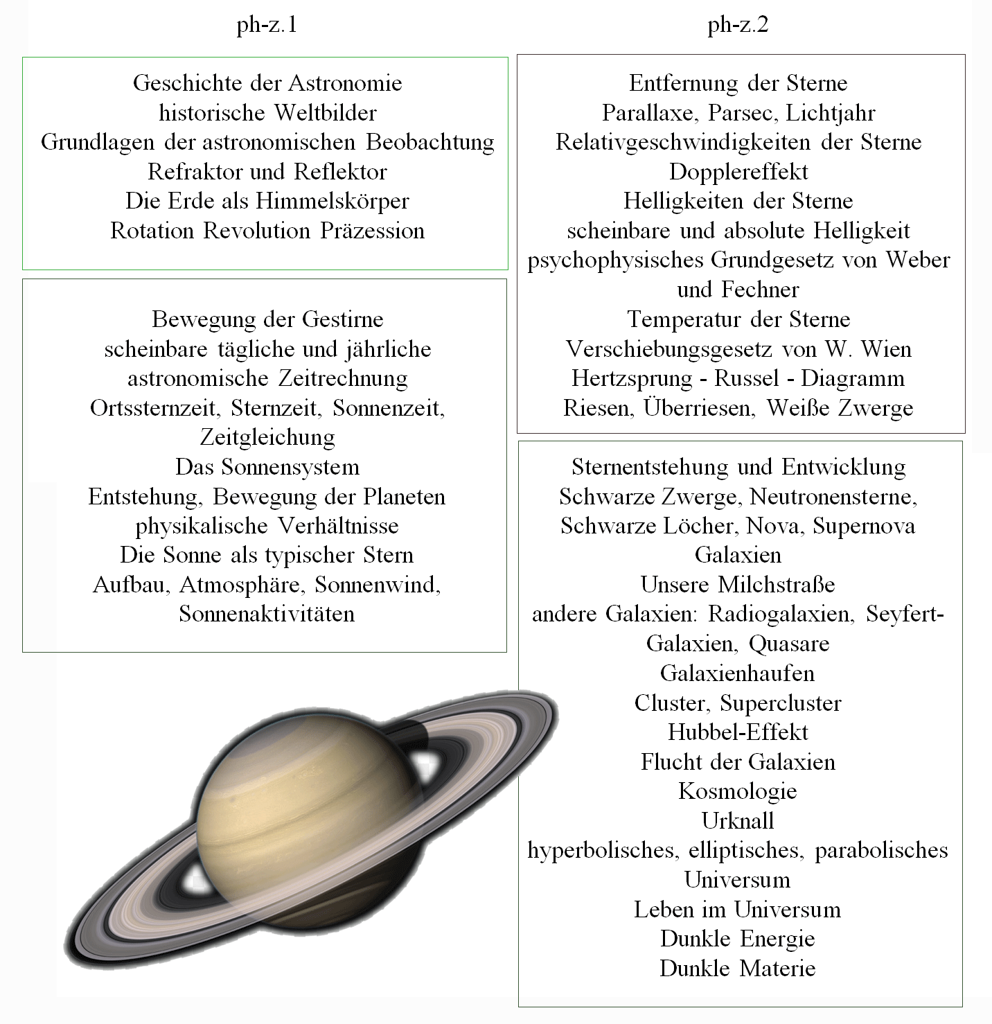 Der Besuch des Kurses "Astronomie für Fortgeschrittene" (ph-z.2) setzt allerdings den Besuch des Kurses "Astronomie für Anfänger" (ph-z.1) voraus.