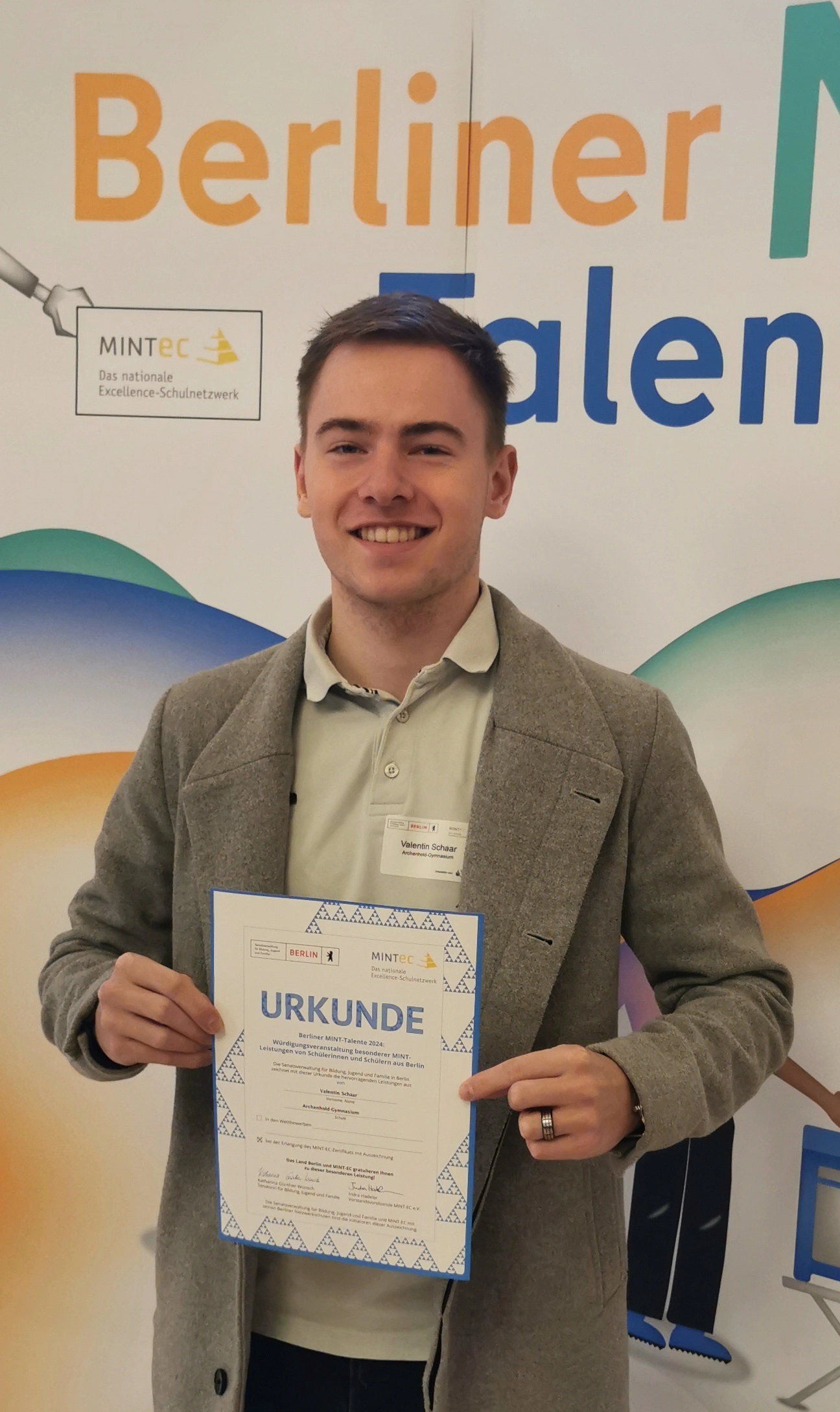 Es wurden Schüler*innen ausgezeichnet, die herausragende Leistungen in MINT-Wettbewerben erzielten, sowie solche, die das MINT-EC-Zertifikat mit Auszeichnung erworben haben. Das MINT-EC-Zertifikat wird von MINT-EC-Schulen zur Auszeichnung von Abiturient*innen verliehen, die sich über ihre gesamte Schullaufbahn hinweg und über den Unterricht hinaus im MINT-Bereich engagiert haben. Das MINT-EC-Zertifikat wird von 80 Universitäten und Hochschulen in Deutschland, Österreich und der Schweiz bei der Bewerbung um einen Studienplatz berücksichtigt. Einen fachlichen Programmpunkt bildete die Keynote von Dr. Carmen Köhler, Analog-Astronautin, KI- und Data-Expertin und Unternehmerin zum Thema „Reise zum Mars“. Wir gratulieren Valentin Schaar vom Archenhold-Gymnasium zu seinem MINT-EC-Zertifikat mit Auszeichnung! Weitere Infos unter https://www.presseportal.de/pm/129100/5880831.