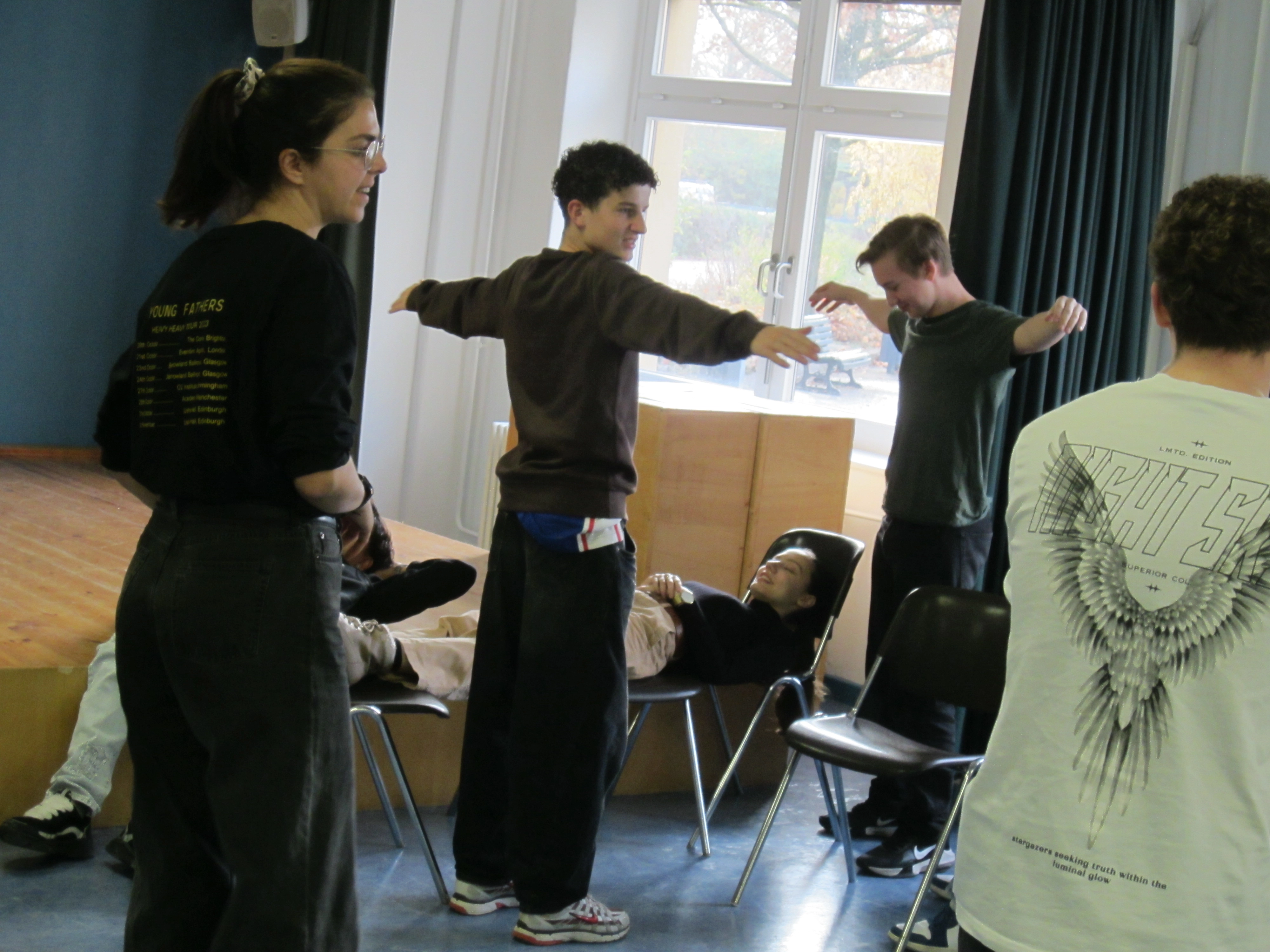 Last Friday our class 10.3 did a themed workshop on rebellion. Two actors came to our school. We dealt particularly with climate change and there was a small part where we acted out some scenes in groups. The workshop was great despite the fact that many of us had expected rebellion to be even more central in it. We enjoyed it being interactive in an interesting way, which made all students participate actively. At the end there was a lot of applause for the creative and very different ways in which all the groups played their scenes on stage.